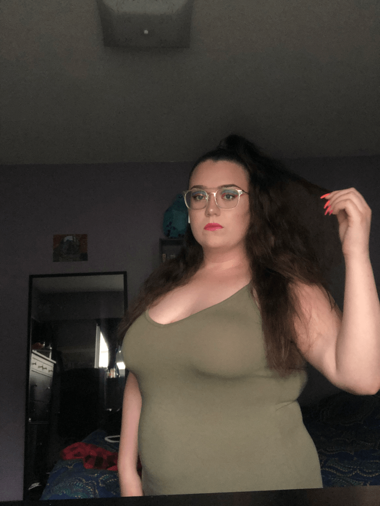 In my experience, it is hard to find plus size clothes at the mall that fit current trends. I’m thankful that 90s vintage is in style, because I can get stuff second hand. But generally, I don’t think my value correlates to what is “popular”; I’d say people who know me well know that I do not like to conform much anymore. For my entire teen years, I never stepped foot in a Garage or Aritzia. Their clothes simply don’t fit me. And it was a bit sad when all the other girls were in them. But, now that I have gained confidence in my body, I have been able to seek out plus sizes that are a bit trendier.