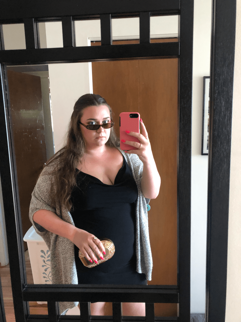 Being big my whole life definitely hindered my fashion sense. Crippled by severe anxiety, any trip to Sears was dreadful as a young person. I can’t count how many times I cried in the change room or needed a moment in the car alone after swimsuit shopping. This is the reality for many fat people, and it can create mental barriers to self confidence at a critical age. As a kid, I was constantly insecure about my clothes and felt inadequate compared to my peers. I was bullied at times for my appearance. Changing in gym class was so embarrassing that I would go in early so nobody saw me, and I’d be the only one after class changing in the closed stall. But once I entered university, I donated most of my blouses, tees, cheap leggings and cardigans and began to explore a more authentic style. This likely had to do with the fact that I love makeup, and I reached the age where I could go clubbing. Going out with my amazing, supportive friends gave me the confidence to slowly find my own unique style, without hiding my body so desperately as I always had. Most days of university I was adorned in hoodies and Lululemons. The main struggle with that is tackling the sweatiness of going from the cold air to the hot bus to the hot lecture hall… oof. I may never figure that one out.