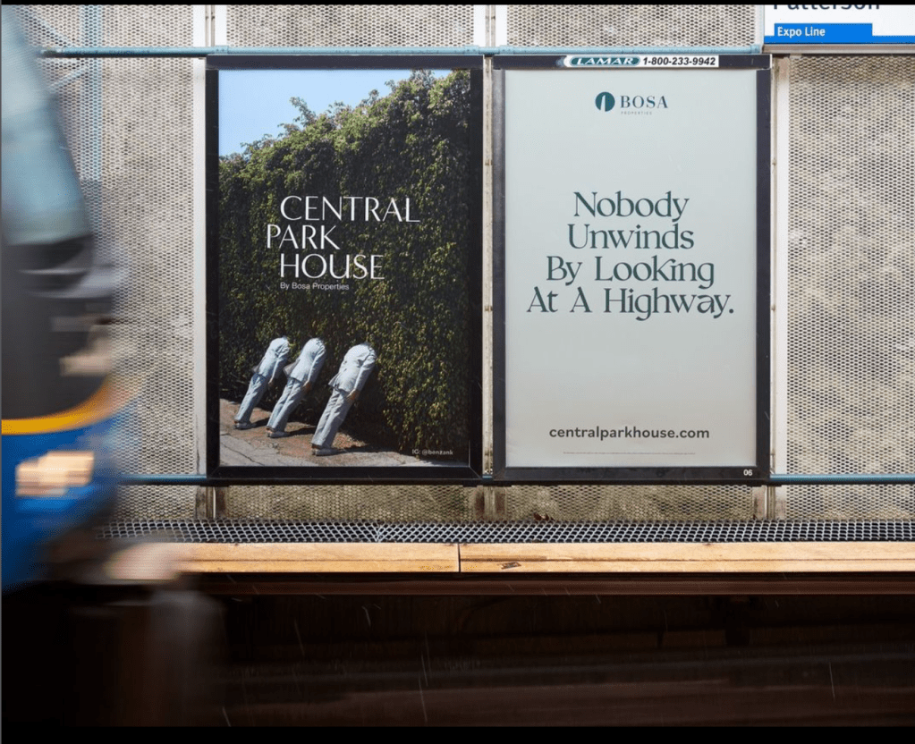 What truly gave me the ick is this ad campaign at the train station, reading “nobody unwinds while looking at a highway”. Well, actually, plenty do, and have no other option.